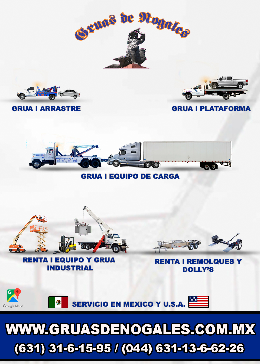 GRUAS DE NOGALES es una empresa Mexicana ubicada en la ciudad de Nogales, Sonora, Mexico.